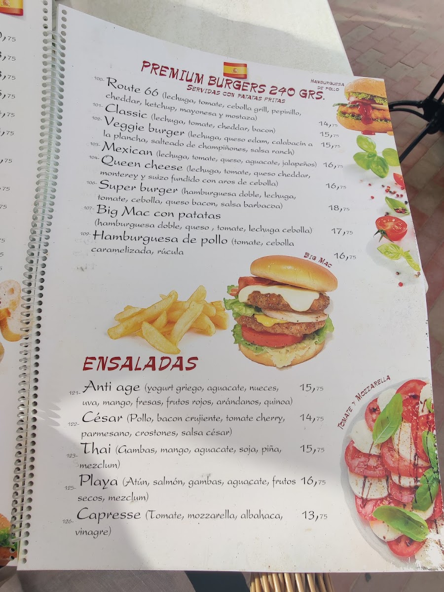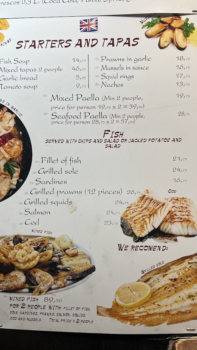 The menu at Restaurante Bar Playa offers a range of options typical of a bar & grill and salsa bar establishment. It includes a variety of grilled dishes, seafood, tapas, and classic bar fare suitable for casual dining. Visitors can expect selections like grilled sardines, paella de marisco, grilled squids, and meat dishes such as burgers. The menu also features light bites and mixed tapas, catering to those seeking smaller portions or sharing plates.