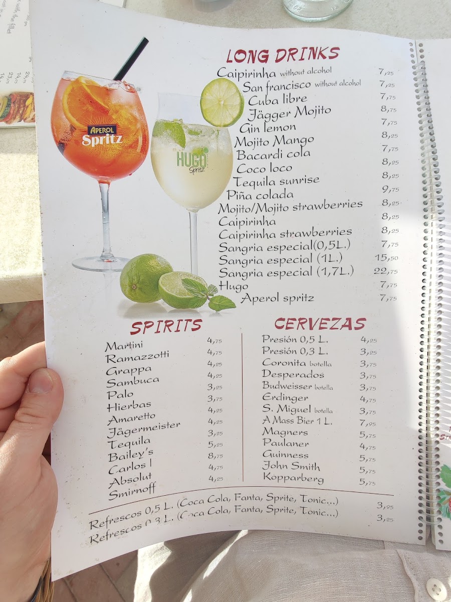 The layout of the menu is likely structured into categories such as grilled dishes, seafood, tapas, desserts, and drinks, allowing visitors to easily navigate between different meal types and flavors. This structure supports both relaxed, extended dining and quicker visits for snacks or beverages.